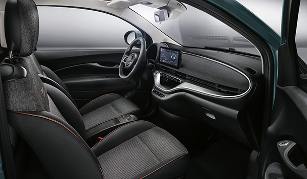 Moștenirea unei mașini reprezentative. Senzația de dolce vita în aer liber în primul vehicul electric Cabrio cu 4 locuri. 500 Icon Cabrio este diponibil în România în nuanța de vopsea metalizată Rose Gold, în timp ce 500 Icon Hatchback beneficiază de vopsea pastel Onyx Black. Un nou habitaclu începe de la absența tunelului central, făcând loc pentru mai mult spațiu și confort. Pachetul de dotări interioare cuprinde scaune fața reglabile pe 6 direcții, cotieră față cu spațiu de depozitare și torpedou cu cheie. La exterior, oglinzile au carcase în culoarea caroseriei și jante din aliaj de 16” cu pneuri 195/55.